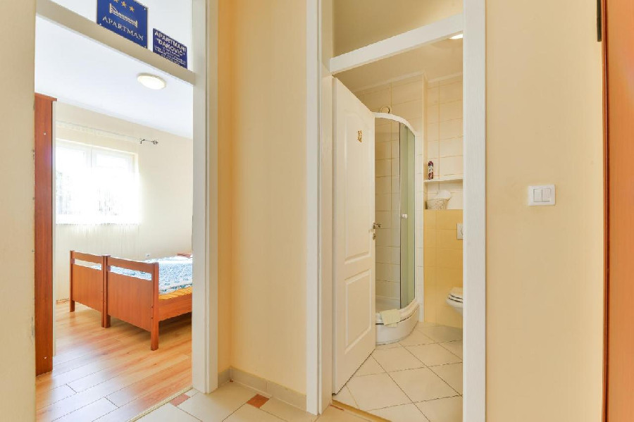 A Pakostane Laguna 2 apartman csendes utcában a Laguna 1 ház mellett található, nagyon szép környezetben a híres Pine Beachtől 700 méterre fekszik, autóval 2, gyalogosan 9 percre. Az apartman bővebb leírása a főoldalon található.