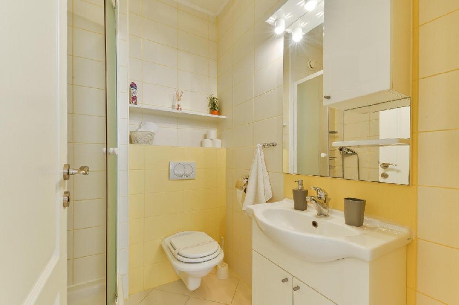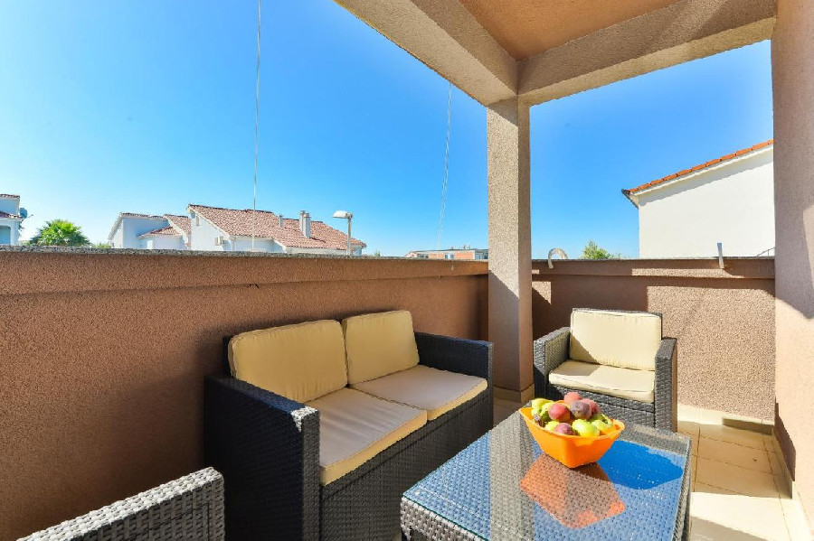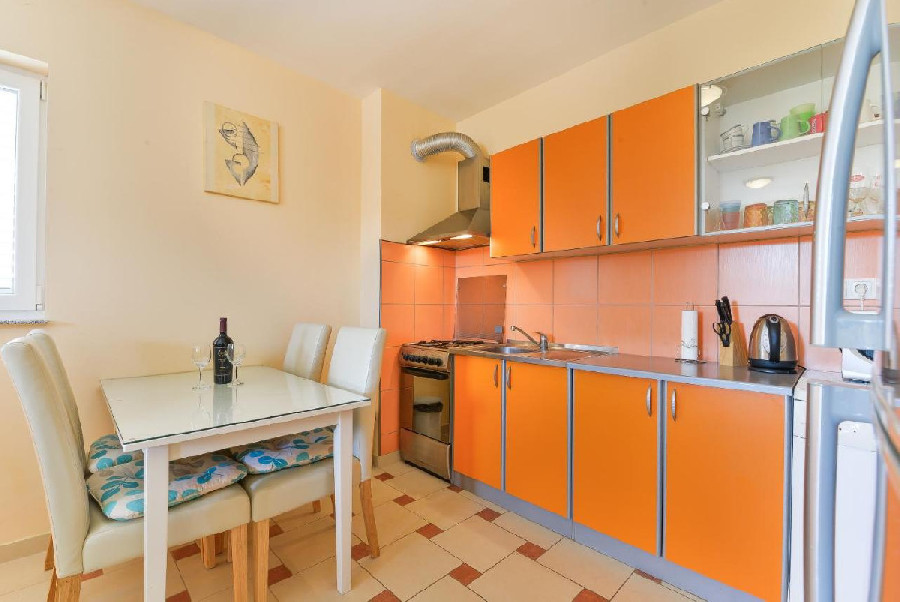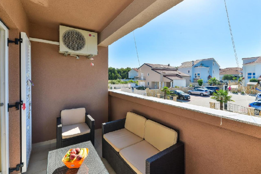 Pakostane Laguna 3 apartman csendes utcában a Laguna 1 ház mellett található, nagyon szép környezetben a híres Pine Beachtől 700 méterre fekszik, autóval 2, gyalogosan 9 percre. Az apartman első emeleti, bővebb leírása a főoldalon található.