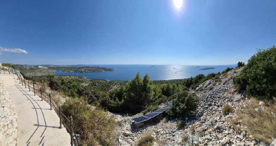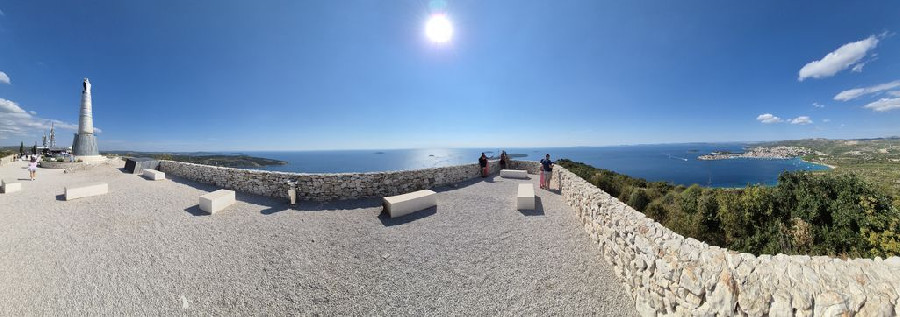 A monumentális alkotást arany bevonat, valamint színes üveg és tükörmozaikok díszítik. Ez a legnagyobb ilyen jellegű emlékmű a világon. Az alkotás dombtetőn helyezkedik el, ahonnan 360 fokos kilátás nyílik Primošten festői óvárosára, a környező szigetekre és az Adriai-tengerre.