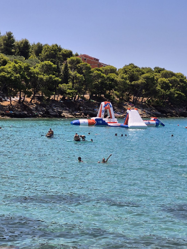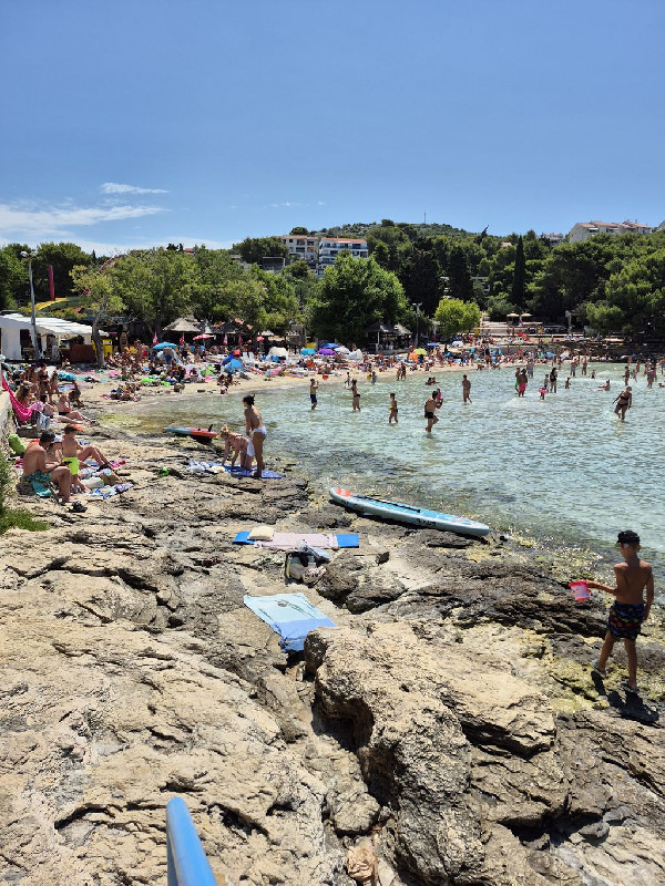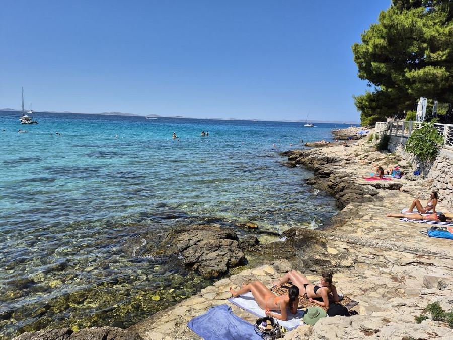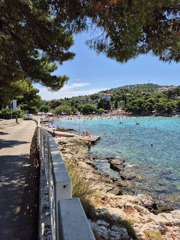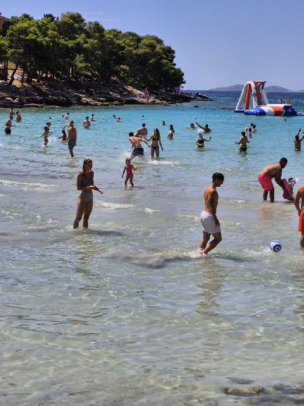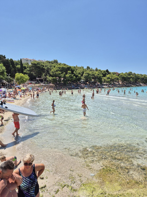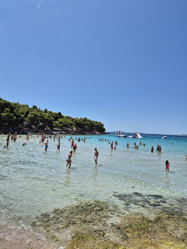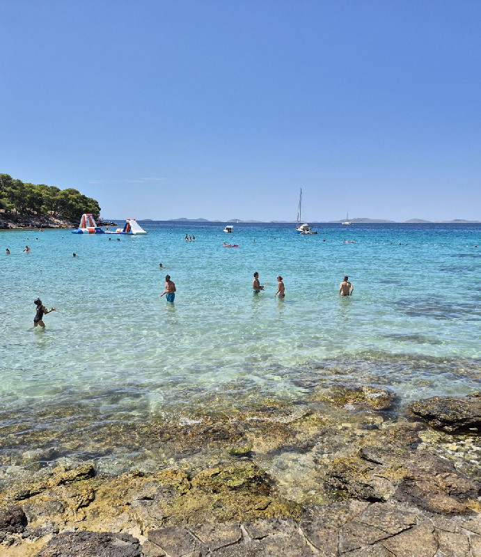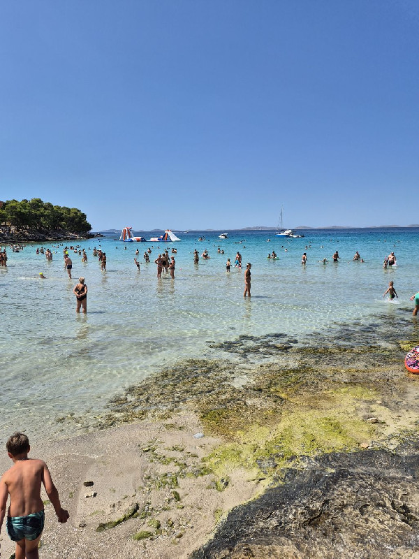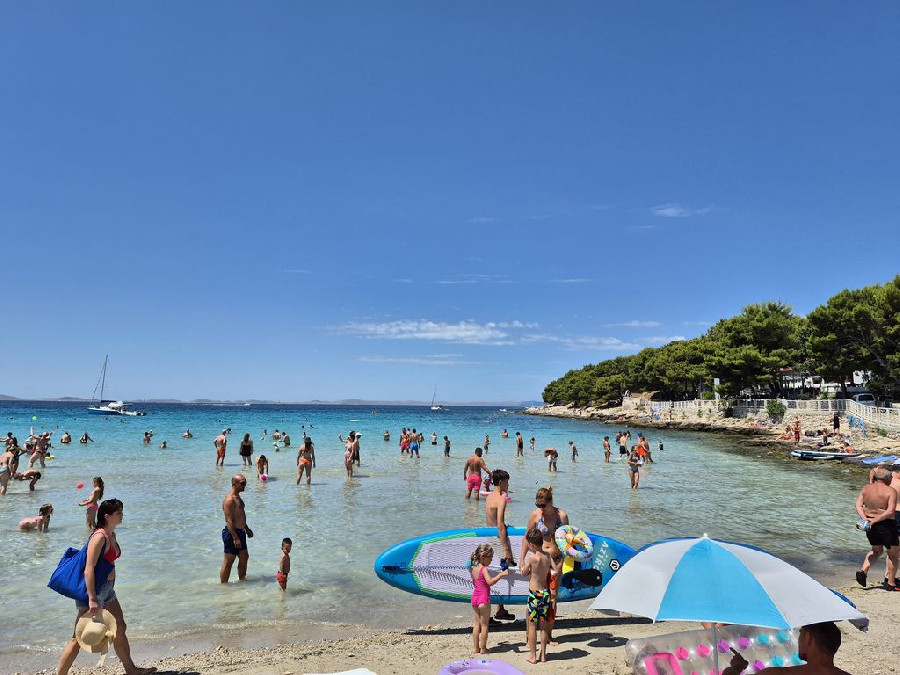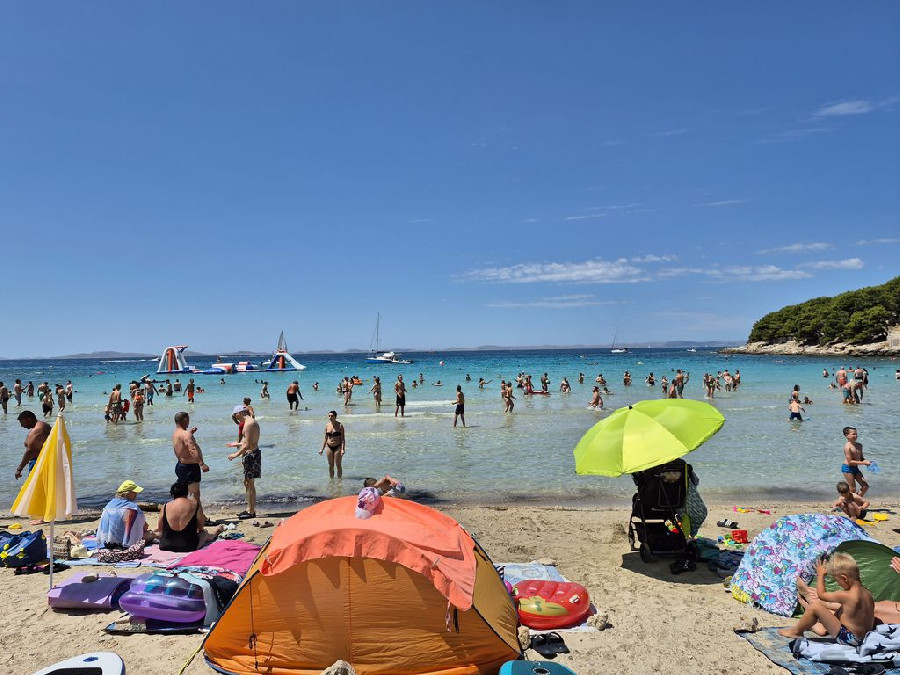 Karin Gornjitól 75 km, Pakostaneból 35 km-re található a Slanica Murter sziget és a környék leghíresebb homokos strandja. A Parkolásért fizetni kell, 2025-ben egy óra 3€, teljes nap 10€.