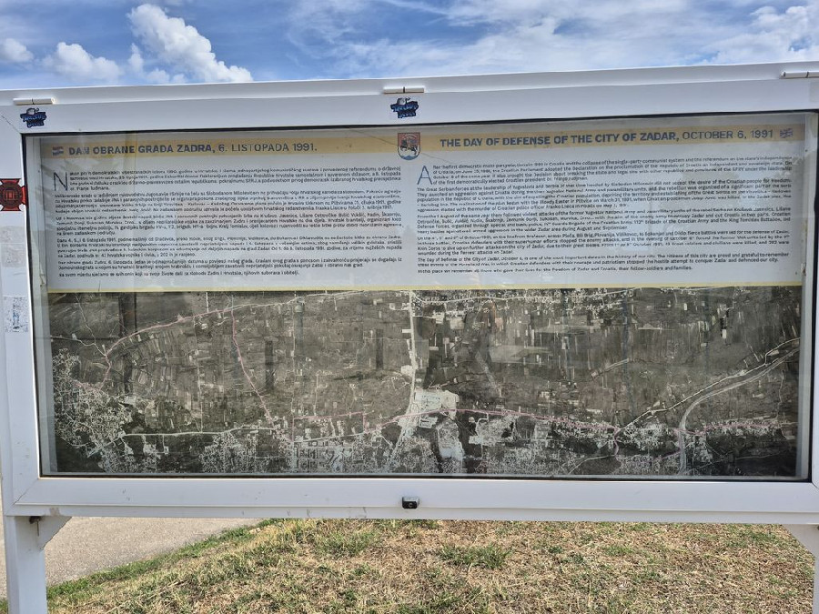 „Ezen a helyen emlékezünk mindazokra, akik életüket adták Zadar és Horvátország szabadságáért, bajtársaikra és családjaikra” – olvasható az emléktáblán.