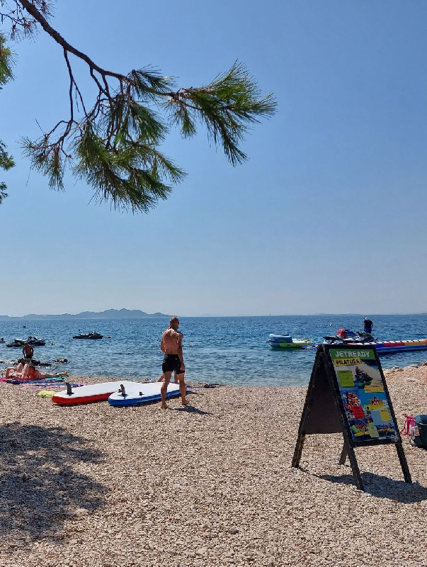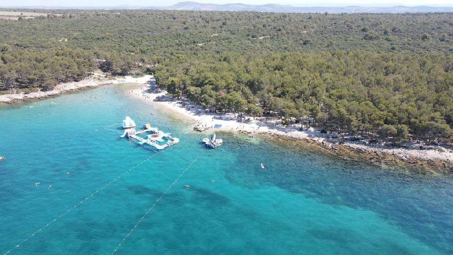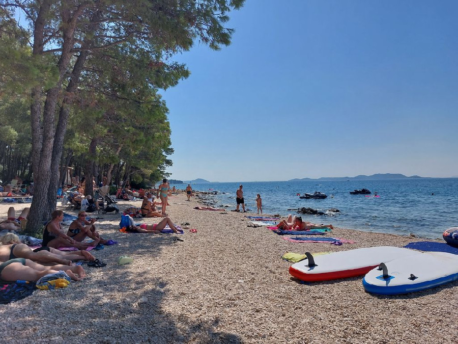 Pakoštane településtől a legészakabbra fekvő partszakasz, az apartmantól 1,5 km. Ehhez a parthoz való le és bejutáshoz ingyenes parkolókártyát biztosítunk az összes apartmanunkba érkező vendégnek, melyet a vendégeink használhatnak az itt tartózkodás teljes hete alatt, tehát itt nem kell a parkolásért fizetni, a hatalmas parkolóban mindig van hely.