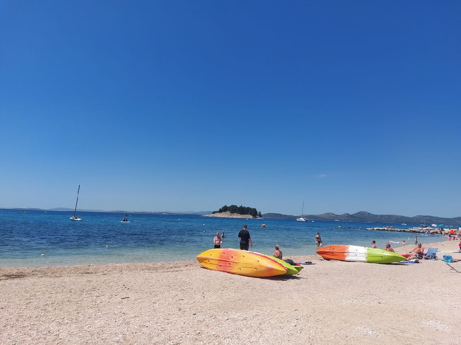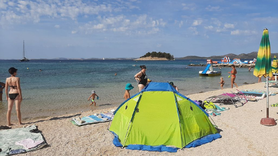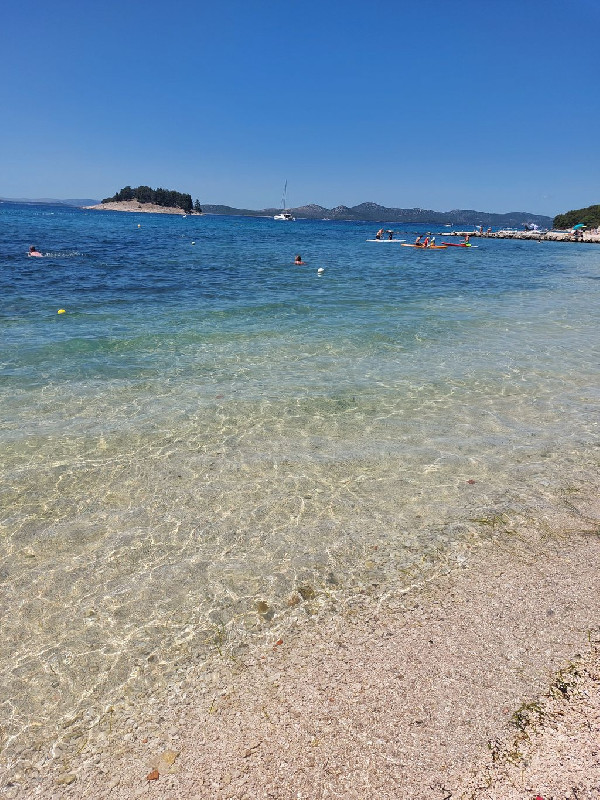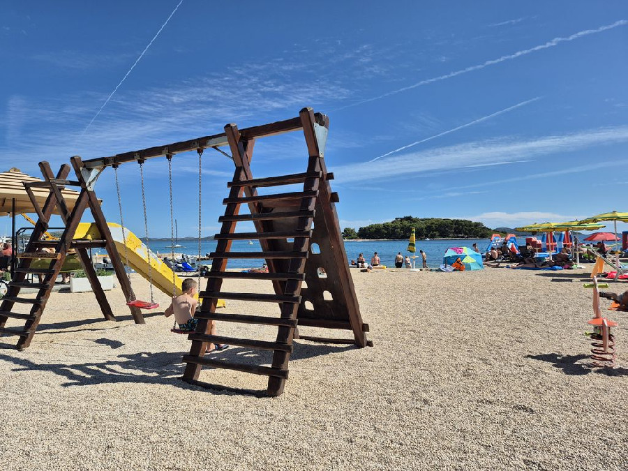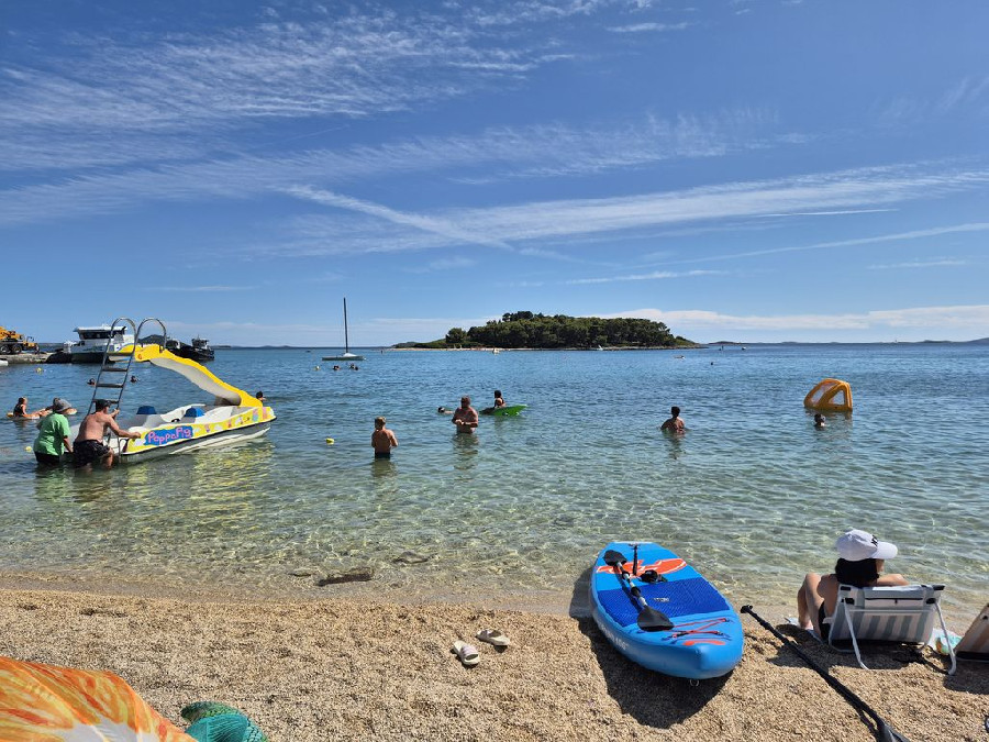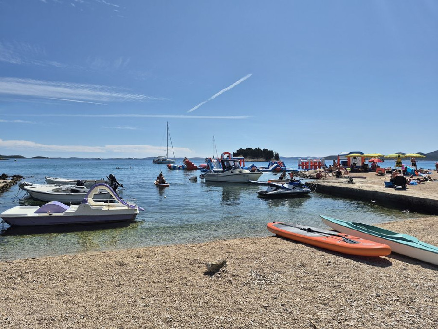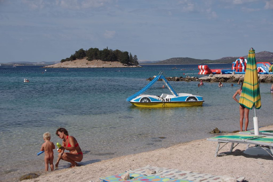 A fiatalabb generációnak a vízben aqua park vízi ugráló is van. Gps koordináták: 43.90749, 15.50135