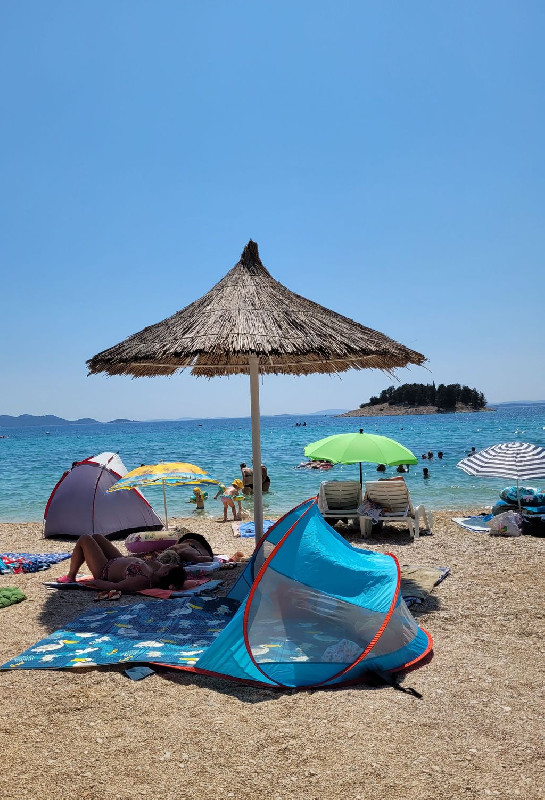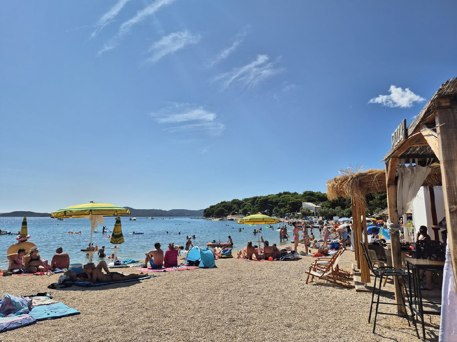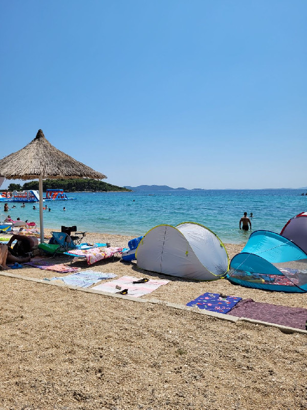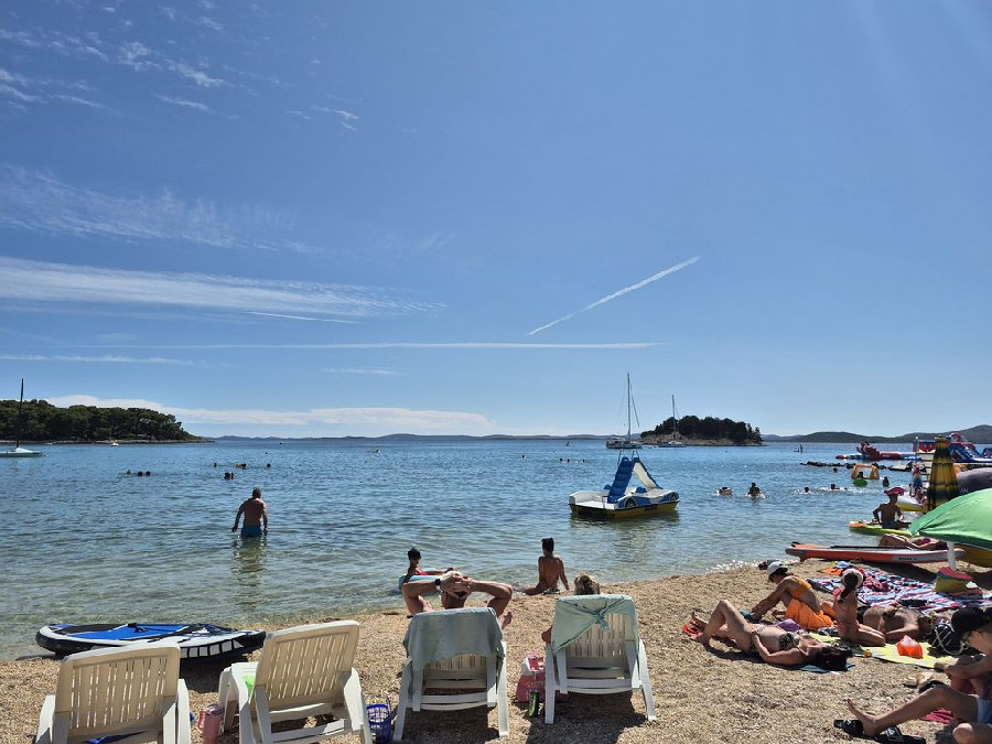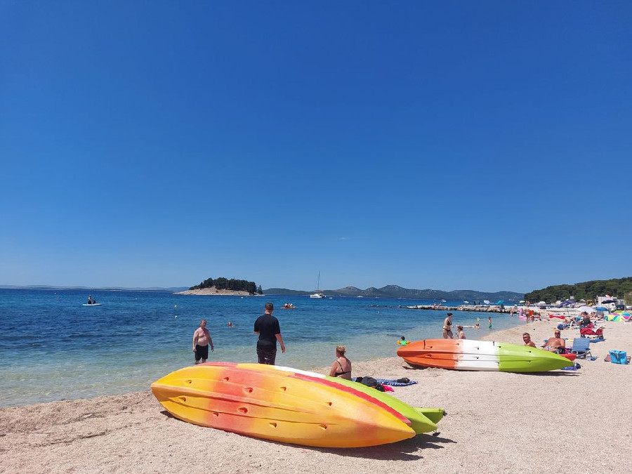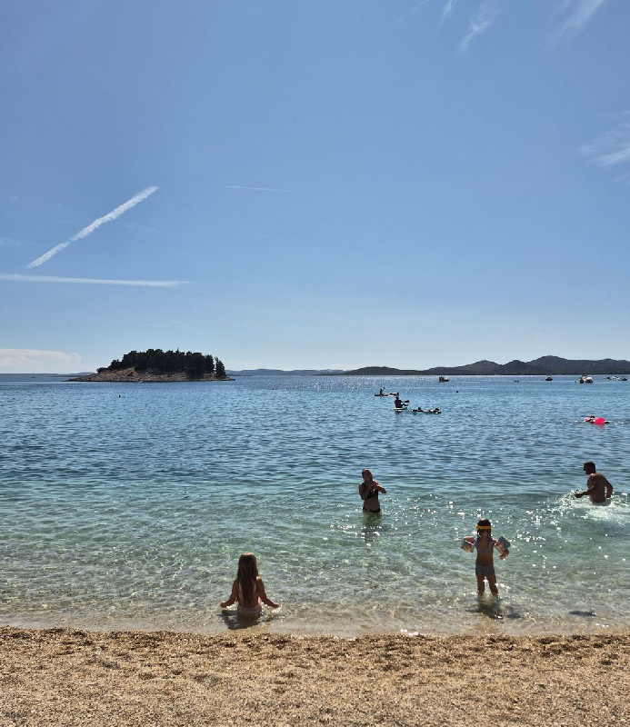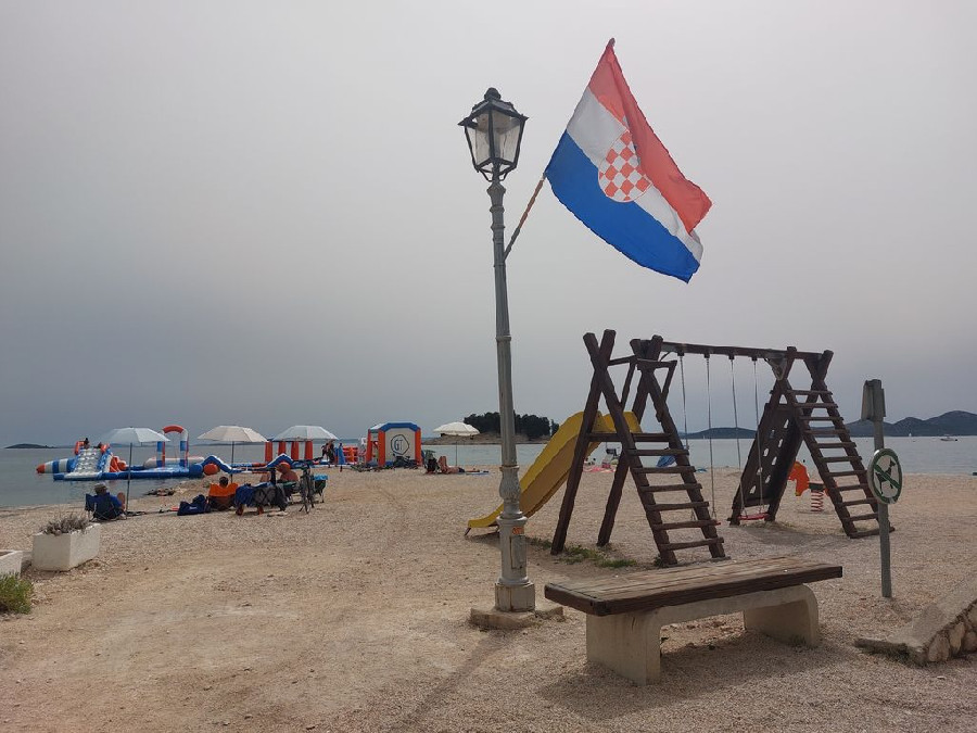A fiatalabb generációnak a vízben aqua park vízi ugráló is van. Gps koordináták: 43.90749, 15.50135