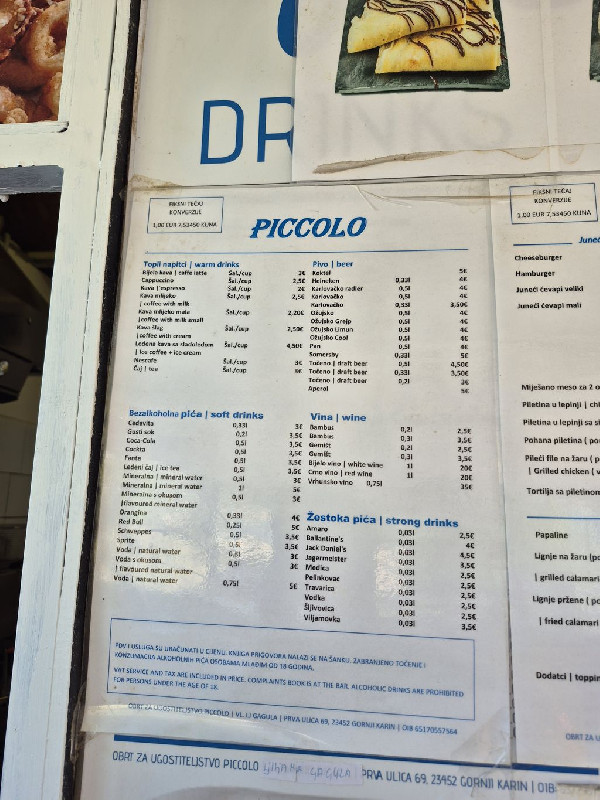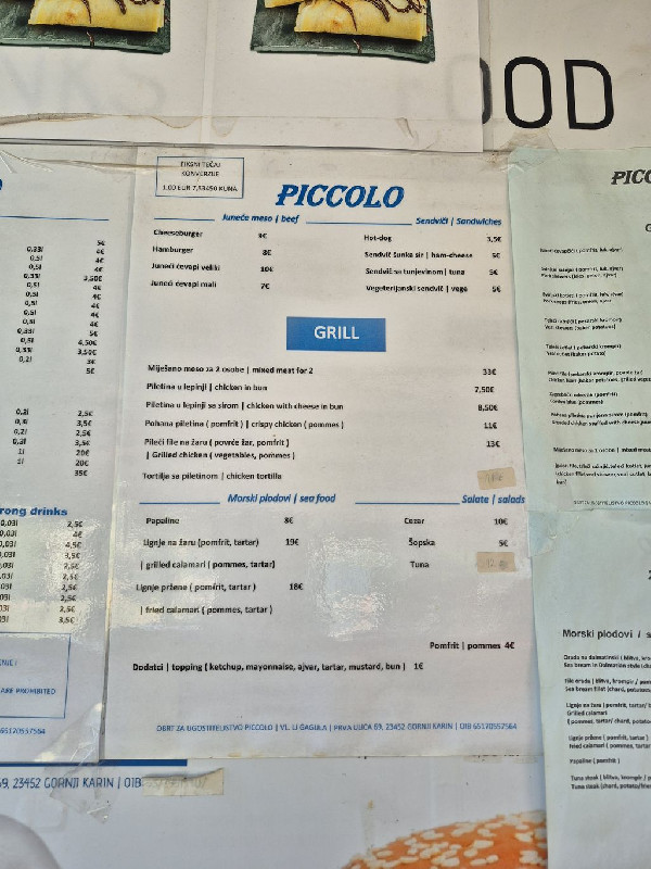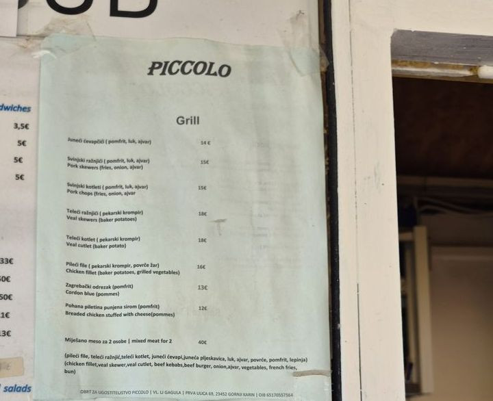 A Bistro Piccolo Karin Gornjiban a központi strandon található az I. utca 74A szám alatt. 2025 árakat a képek között találjátok.