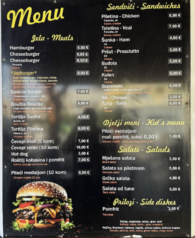 Az étterem Pakostaneban az Obala Kralja Petra Krešimira IV. alatt található a központban lévő körforgónál. Nagy adagokat adnak, elérhető áron, gyors, kedves kiszolgálás.