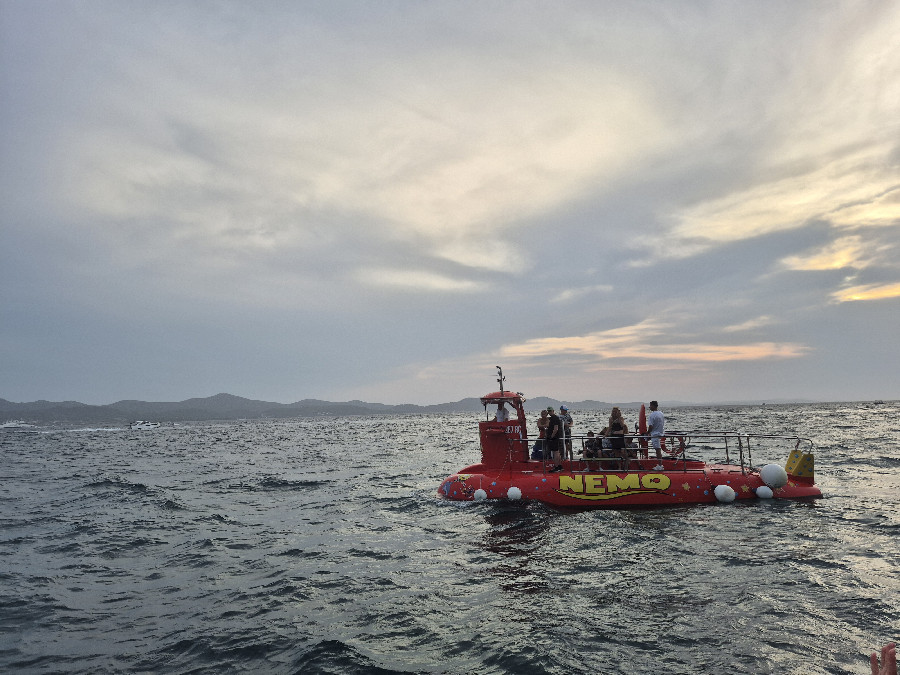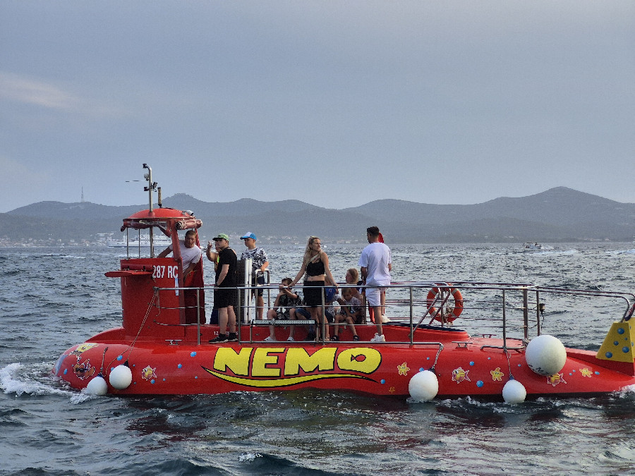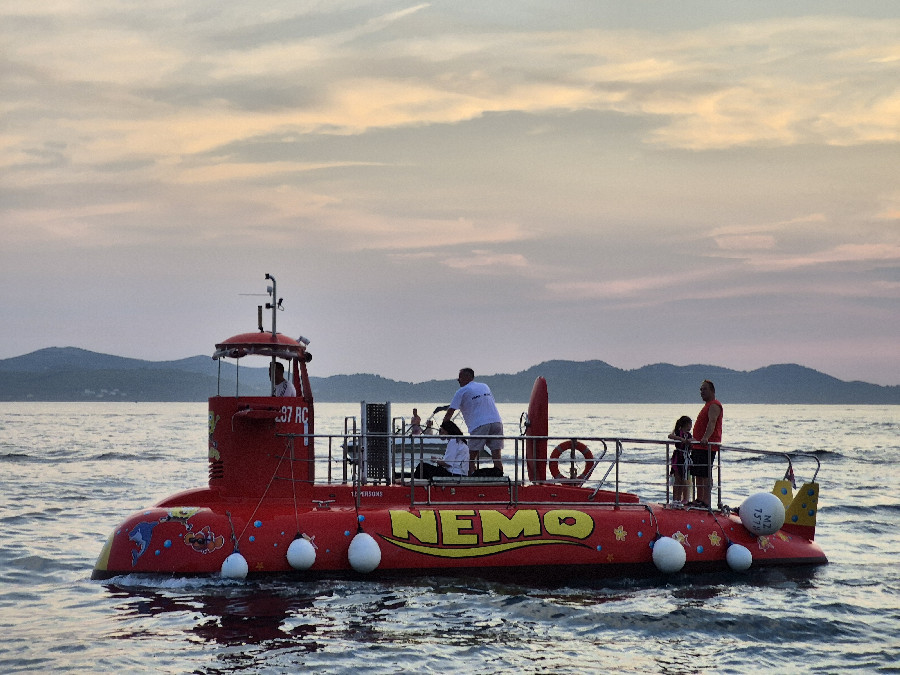 A Zadari óváros nagymólójánál horgonyoz a "sárga tengeralattjáró" üveg fenekű hajó. Innen indul és itt is lehet rá jegyet venni, az út 40-50 perc, a környező partszakaszt járja be. Nagyon sokan választják ezt a programot a Zadari naplemente idejére, ugyanis a tengeralattjáró tetejéről lehet végignézni a csodás naplementét.