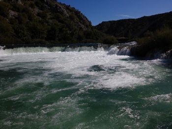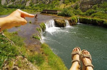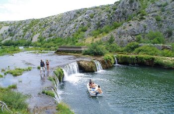 Obrovacból induló hajójárat a Zrimanja folyón egyrészről a Novigradi öbölig, valamint a másik irányba egy vízesésig is. Ezt az utat autóval is meg lehet tenni, Obrovacot elhagyva a 27-es számú úton felkapaszkodva a szerpentineken majd Anita étterménél kell jobbra fordulni, ez már egy alsóbb rendű szűk, szinte egysávos út lesz, majd a vége már köves. Mi itt egy elágazásnál hagytuk az autót, onnan már gyalog folytatuk tovább az utat. Ami megdöbbentő hogy az utolsó 4 kép 2014-ben készült,most 3 évvel később mennyivel kevesebb a vízhozama a folyónak. Jó köves terep, a túra során kényelmes túracipő ajánlott.